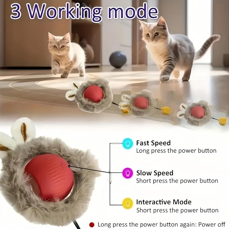 2.When electric cat toy encounters obstacles or narrow points,cat toys balls will reverse itself and move.