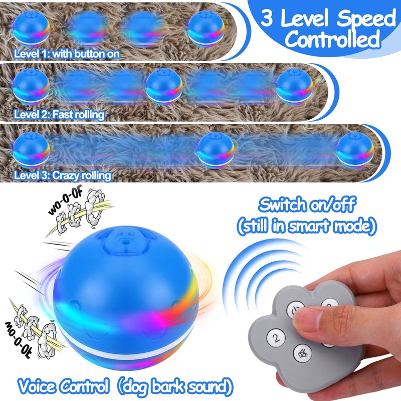 - 2 in 1 Interactive Dog Toys: This self rolling dog ball toy will roll, vibrate,shake move by itself after switch on the button, provide endless fun for your dogs play by themselves; also can be controlled by the remote, help new pet owners who need to establish a good relationship or dog master relieve anxiety by interacting with dogs after busy work