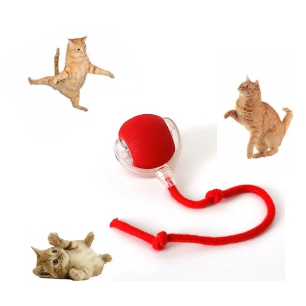 Interactive Rolling Cat Ball Toy (red), 360° Smart Automatic Rolling Pet Ball, Chewie Viral Rolling Ball