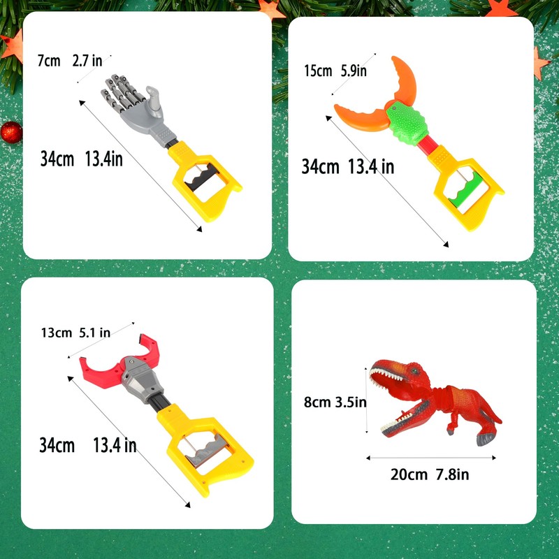 • 【Exciting Toy Claw Grabber Set】Package with 3 pieces (clip,crab clamp, Robotic hand) 12-inch interactive claw toy with one Creative dinosaur telescopic spring clip, suitable for girls and boys who love picking things up and moving them like a little engineer.