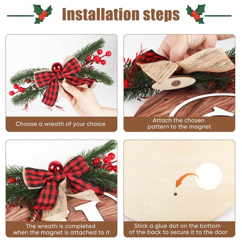 - 4 SEASONAL WREATHS FOR FRONT DOOR: The seasonal wooden home sign Fitted with sturdy burlap rope bow tie and classic artificial greenery,Spring, summer, fall and winter we provide you with four different seasonal themes of wreaths, and provide a magnetic mounting method, easy to install, You can change the wreaths according to different festivals or seasons to welcome the upcoming festivals or seasons, multi purpose, perfect to meet your need.