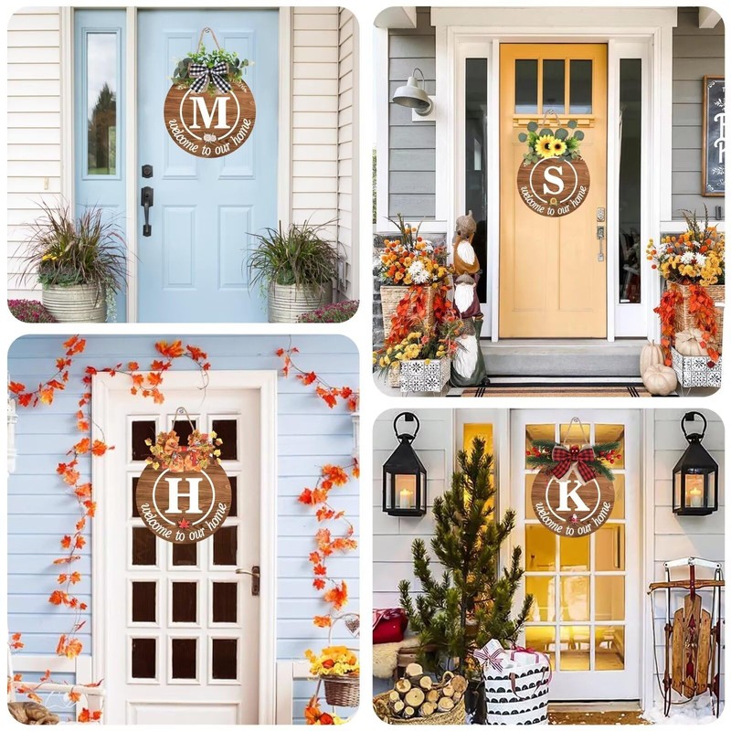 - EXQUISITE GIFTS: Initial interchangeable seasonal welcome sign with door wreaths for front door outside all season, perfect decoration for every season or holiday. The perfect gift for any family home decor, choose the corresponding family last name initials for family or friends, or as a housewarming gift new home for a new homeowner,adding a warm and joyful festival atmosphere and express your warm welcome greetings.