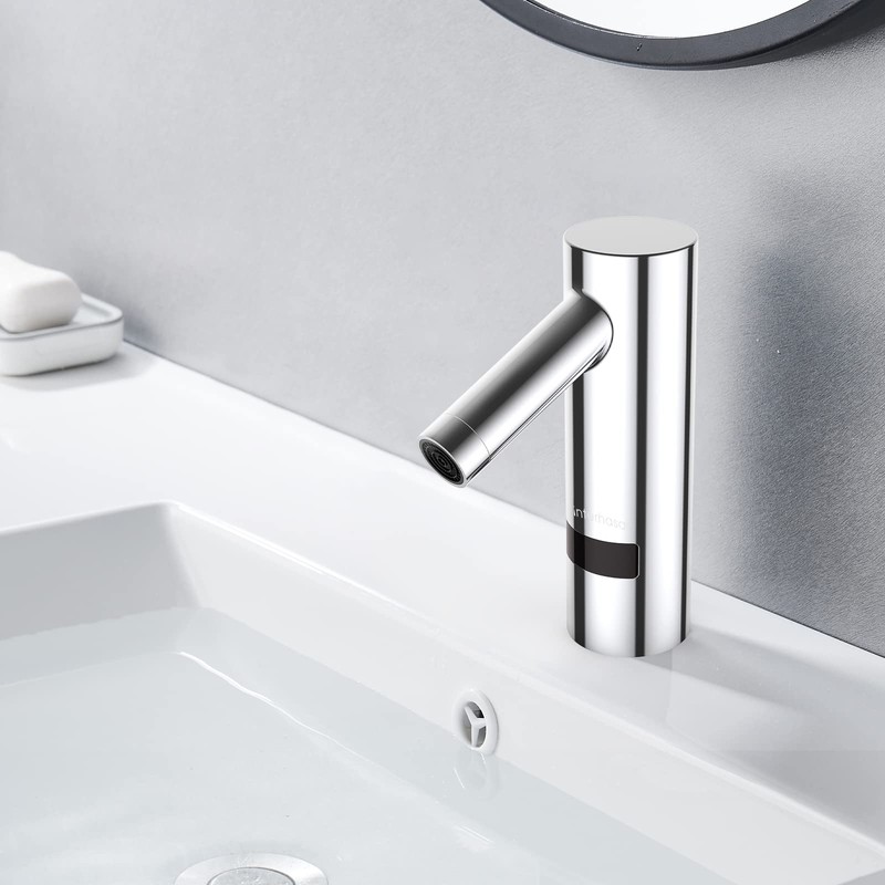interhasa! Touchless Bathroom Faucet Chrome Automatic Bathroom Sink Faucet with Hole Cover Plate, Hands Free Bathroom Water Tap with Control Box (IT2010 Faucet with Tempureture Mixer Set)