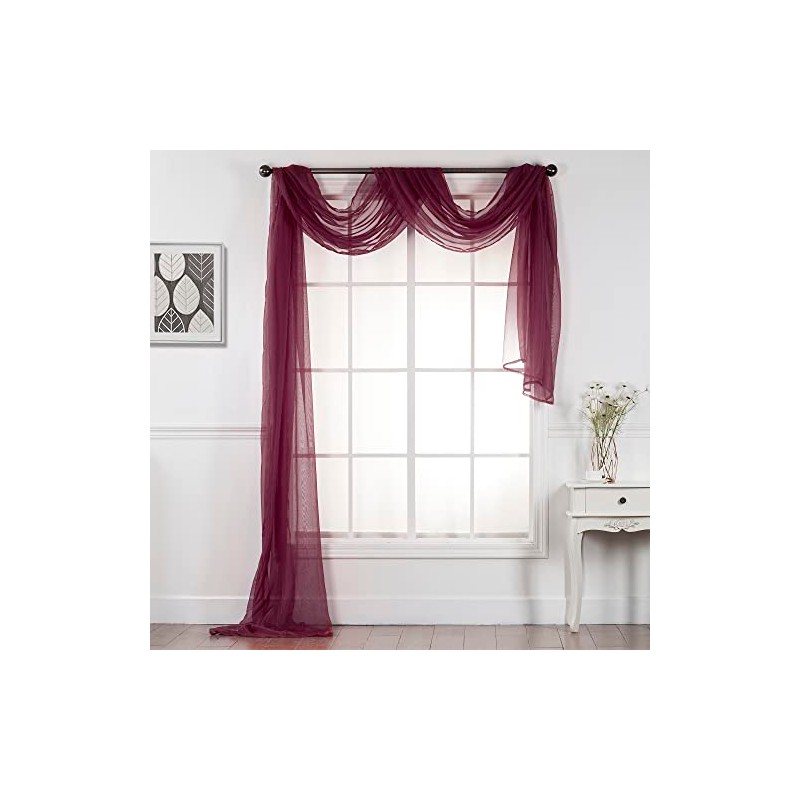 Interior Trends Multipurpose Fully Hemmed Sheer Voile Window or Event Draping Fabric Scarf Valance (Burgundy, 1 Piece: 37" W x 216" L)