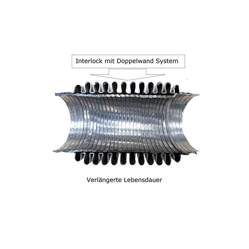 Interlock Flex Pipe, Flex Part, Flexible Pipe Exhaust, Trouser Pipe Flex Piece Made of Stainless Steel, HD Quality – with Reinforced Construction (Double Wall System -> Shockproof and Flexible)