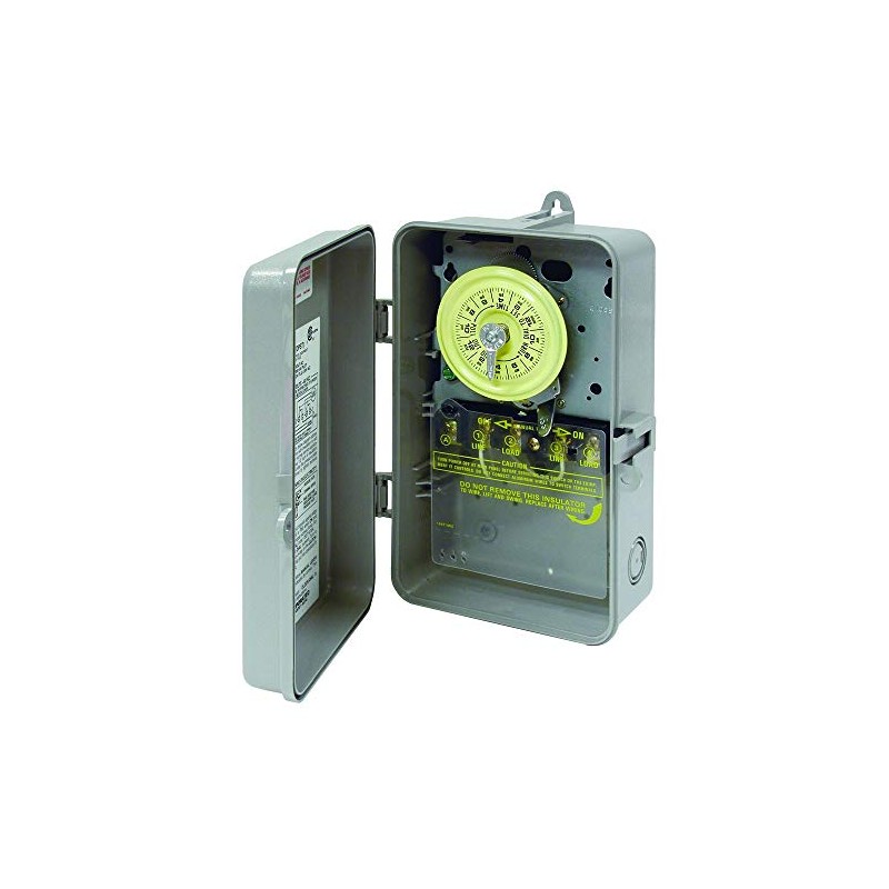 Intermatic T104P 24-Hour Mechanical Time Switch, 208-277 VAC, 60Hz, DPST, Indoor/Outdoor Plastic Enclosure, 1 Hour Interval