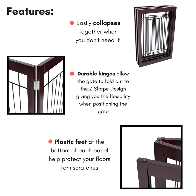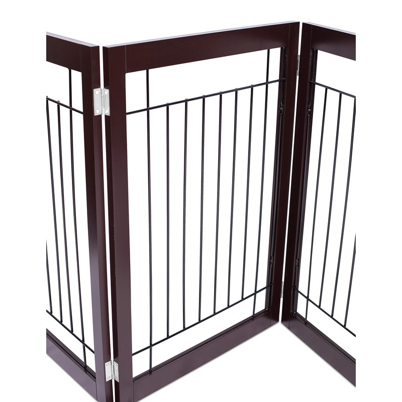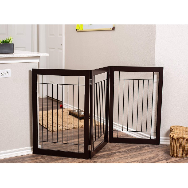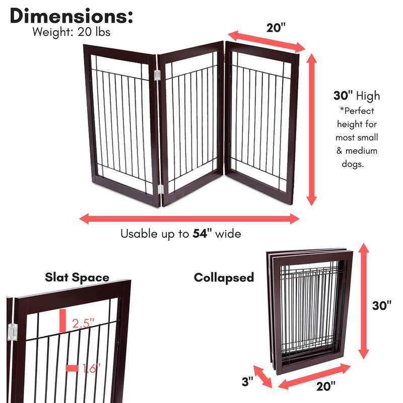 Internet’s Best Traditional Wire Dog Gate - 3 Panel - 30 Inch Tall Pet Puppy Safety Fence - Fully Assembled - Durable MDF - Folding Z Shape Indoor Doorway Hall Stairs Free Standing - Espresso