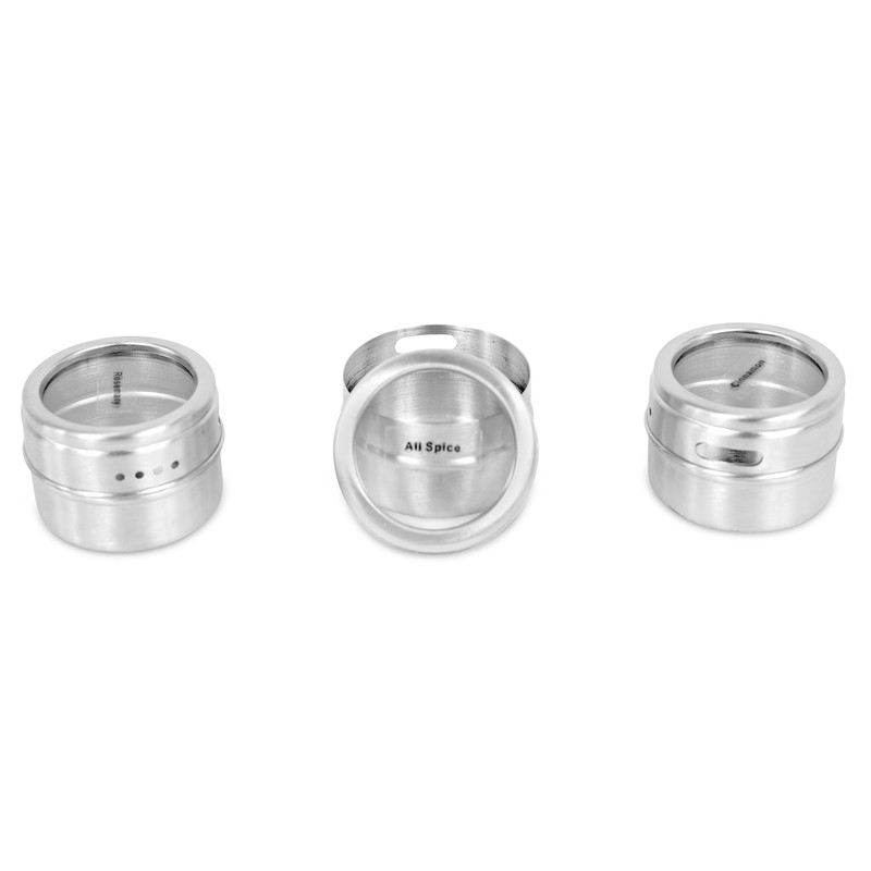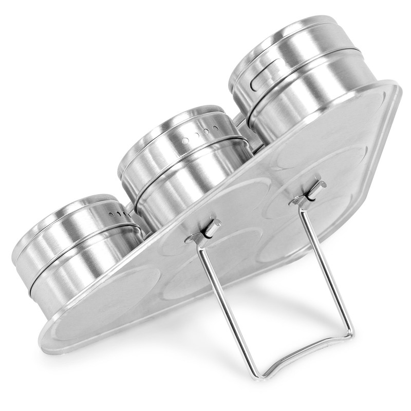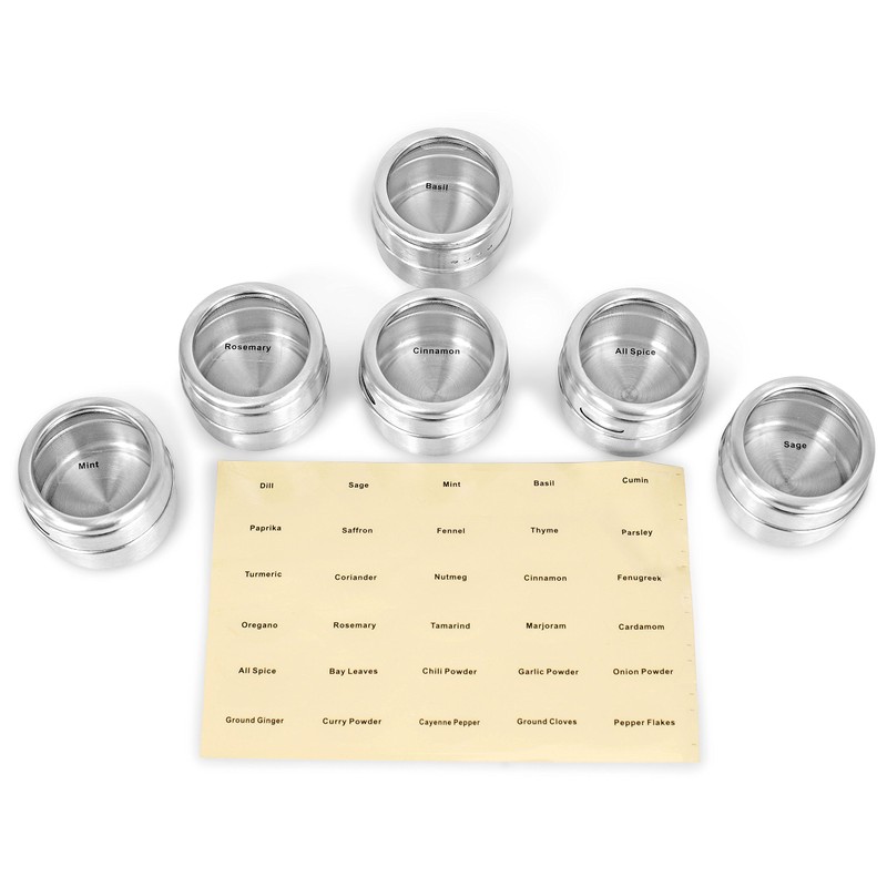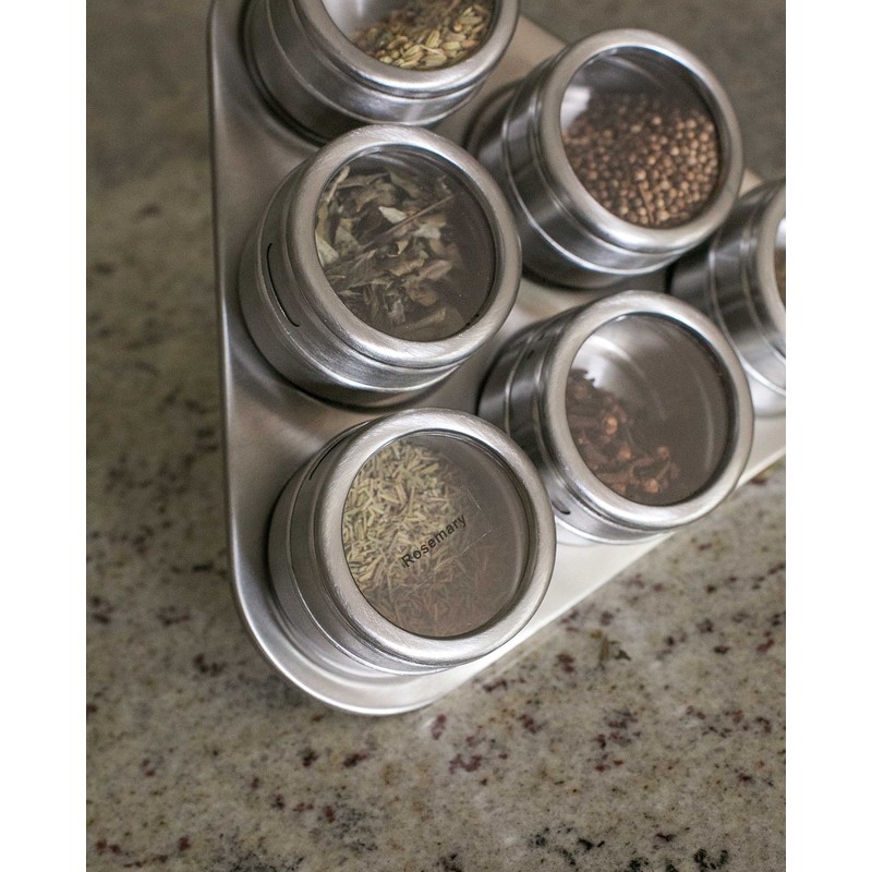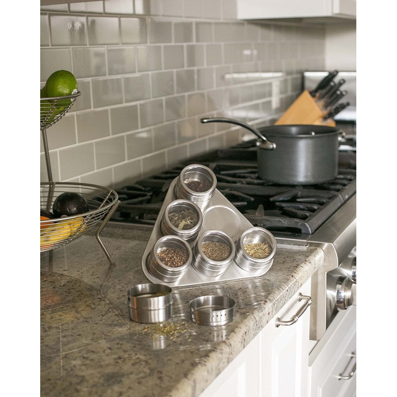 Internet's Best Triangle Magnetic Spice Rack - 6 Jars - Round Storage Spice Rack Set - Clear Sift and Pour Lid - Stainless Steel