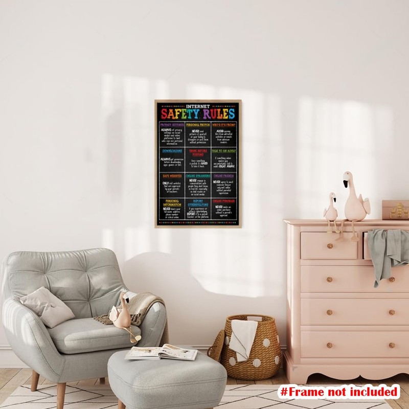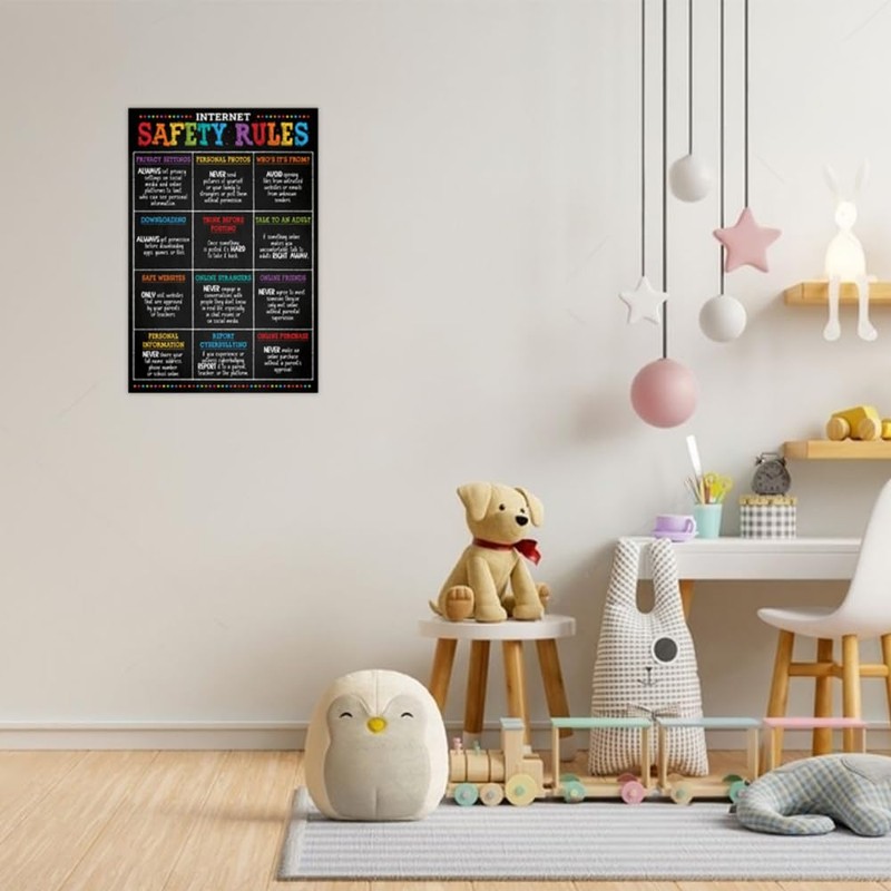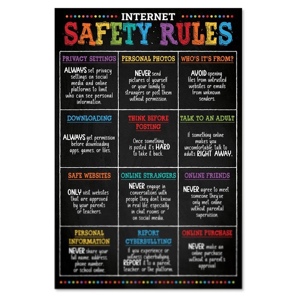 Internet Safety Rules Poster, 12"x18", Computer Science Classroom Poster for Kids, Computer Lab, Technology, Science Lab - Frame not Included