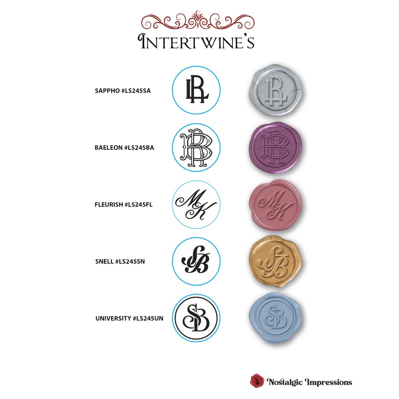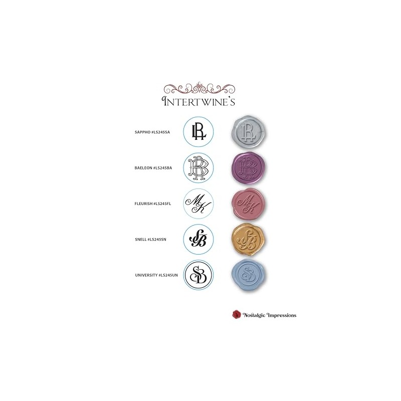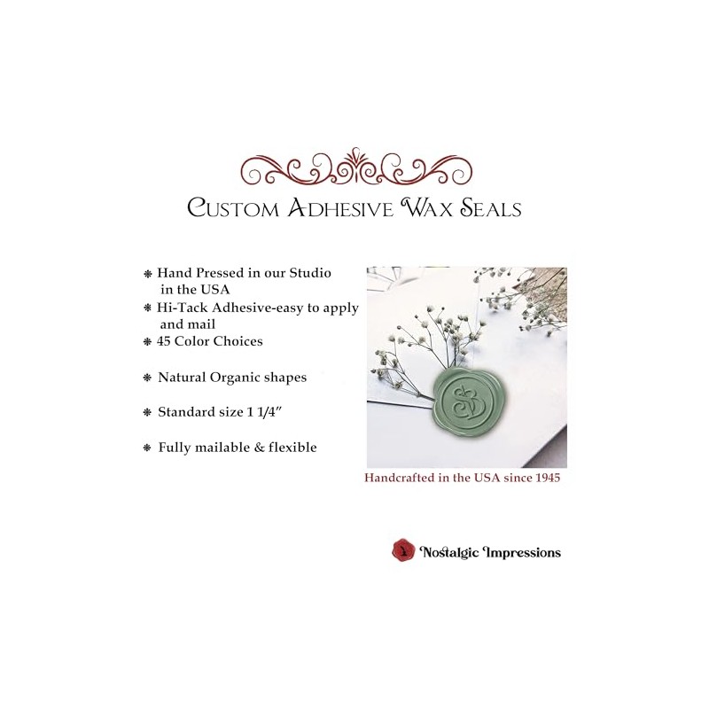 Intertwined Monogram Custom Adhesive Wax Seal Stickers 50-Pack Hand Pressed in USA from Real Sealing Wax-Multiple Color & Design Choices