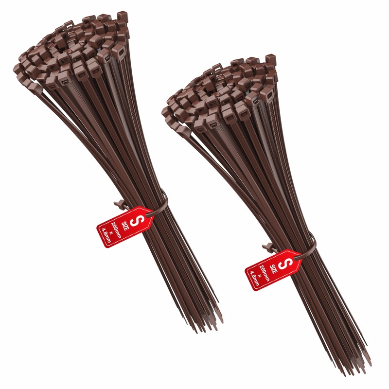 Our set is designed to give you extreme efficiency and maximum comfort and it consists of 100 durable, flexible and durable brown cable ties that allow you to organize and secure your cables.
