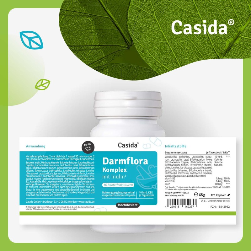 Intestinal flora complex with 16 selected bacterial strains and inulin