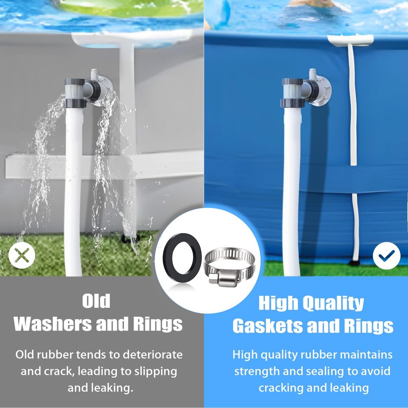 • 【Perfect Sealing Design】The Adapter A for Intex Pool kit comes with 2 throat gaskets, which can provide excellent sealing effect to avoid water leakage. Good sealing performance ensures the normal operation of the pool system and reduces water waste.