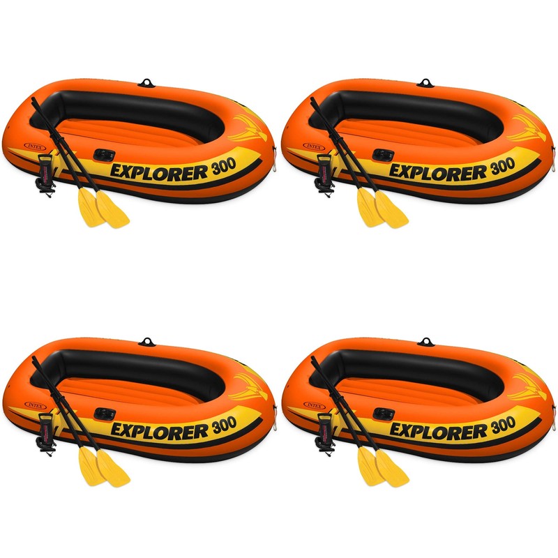 Intex Explorer 300 Compact Inflatable 3 Person Raft Boat w/ Pump & Oars (4 Pack)