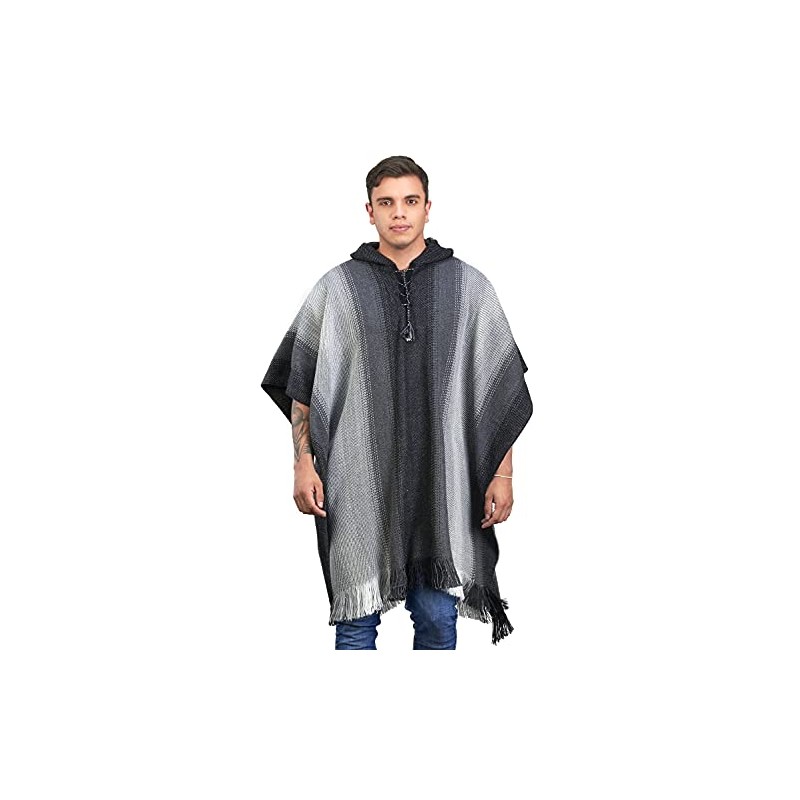 INTI ALPACA Gray Alpaca Hooded Poncho for Men - Soft Alpaca Wool - Cloak Cape - Blanklet poncho (Gray)