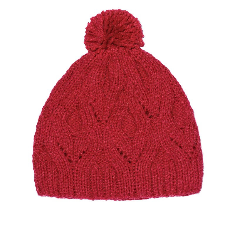 INTI ALPACA Hand Knitted Alpaca Beanie Hat with Pom Pom - Winter Beanie for Outdoor and Indoor (Red)