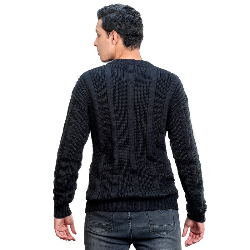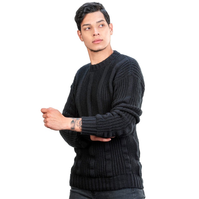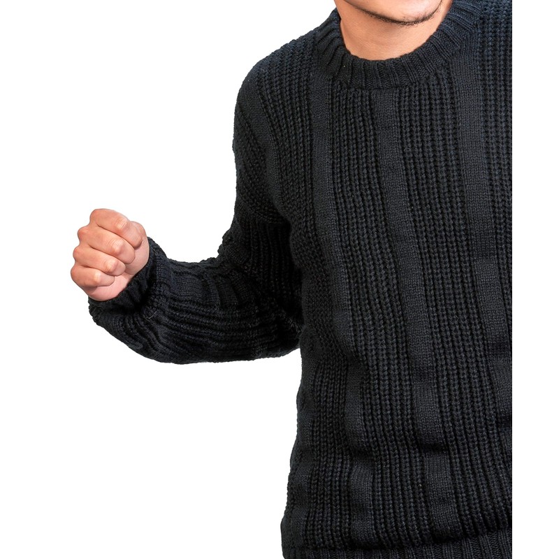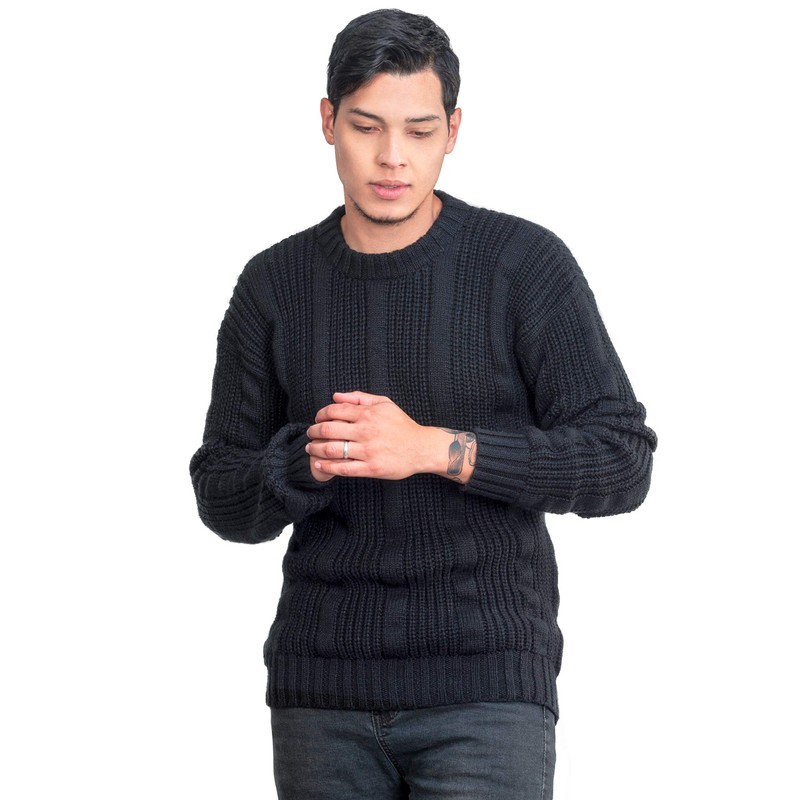 INTI ALPACA Thick Handmade Sweater for Men in Black Alpaca Wool - Winter Crewneck Pullover - Chunky Knit Jumper (X-Large)