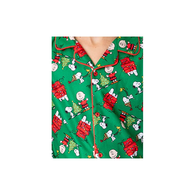 - CLASSIC CHARACTER DESIGN - This Peanuts pajama set features a fun Christmas theme! Both Charlie Brown and Snoopy are pictured in several Holiday scenes! Some of these scenes include Snoopy sitting on a dog house strung up in Christmas lights, both Charlie Brown and Snoopy by a Christmas tree, and Snoopy pretending to be on a sleigh with Woodstock as his reindeer. It's for curling up in and letting your little one enjoy all their favorite Christmas traditions!