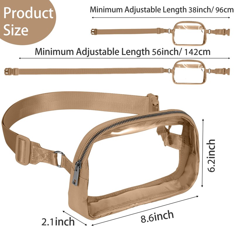 INTINI Clear Fanny Pack for Stadium Events – Small, Plus size Waist Transparent Belt Bag Sports, Concerts, and Festivals (Camel)