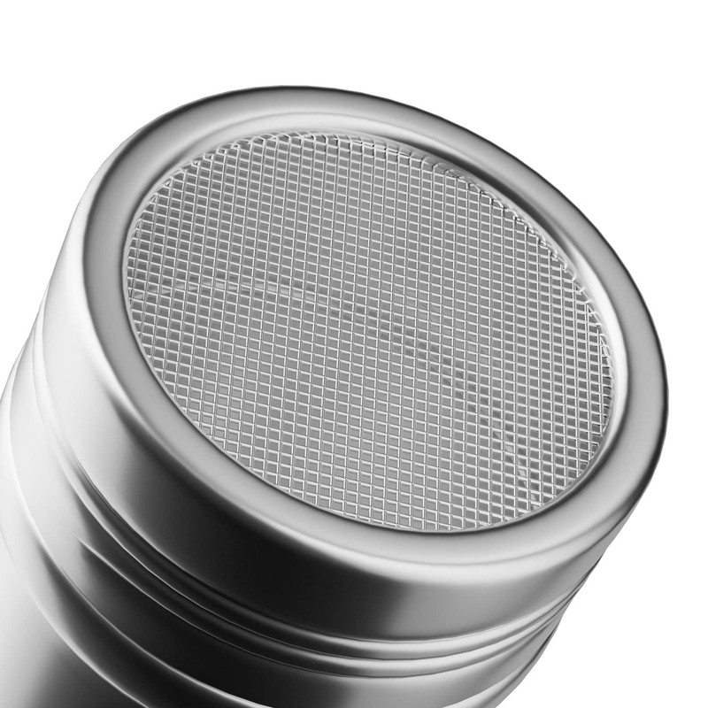 - The shaker can be filled with sugar, cocoa, coffee powder or similar and sprinkle various baked goods, hot cocoa and various coffee variations with the fine sieve. The practical kitchen utensil is small, handy and a must have for any barista or baker.
