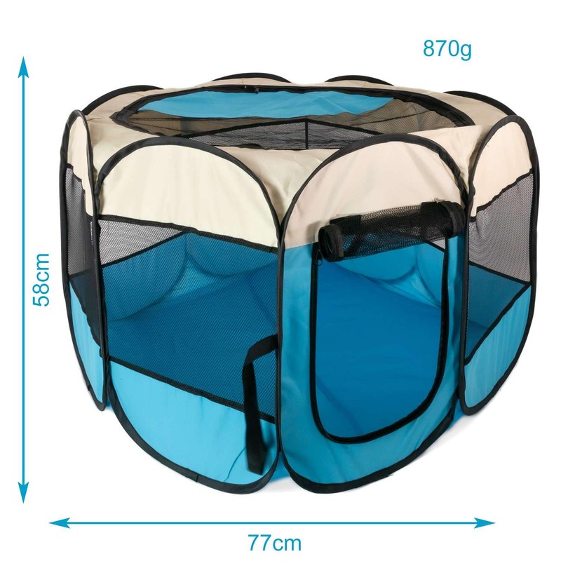 Intirilife Practical Pet Playpen 77 x 58 cm Oxford Fabric Play Tent in Blue - For dogs cats or rabbits to transport play and rest