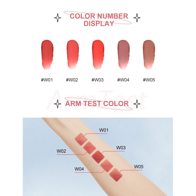 - 【Velvety Mousse Lip Mud】INTO YOU Lipstick use an unprecedented "mud"texture. It is not the liquid used in ordinary lip glaze, but the semi-solid "mud". Lip mud looks dry, but it is really silky and dense.Very stretchable.The mud texture is thinner and more translucent, easily creating an airy soft mist lip makeup.