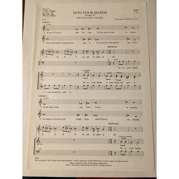 Into Your Hands Psalm 30, Psalms for the Church #6248, SAB Choir, Cantor, Assembly