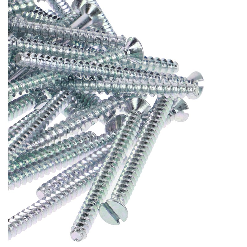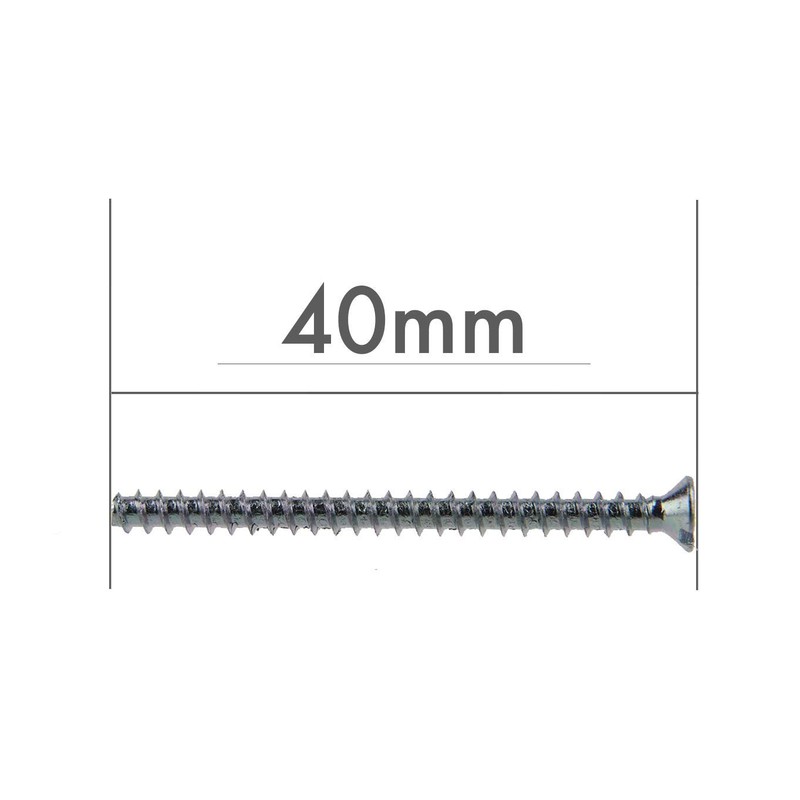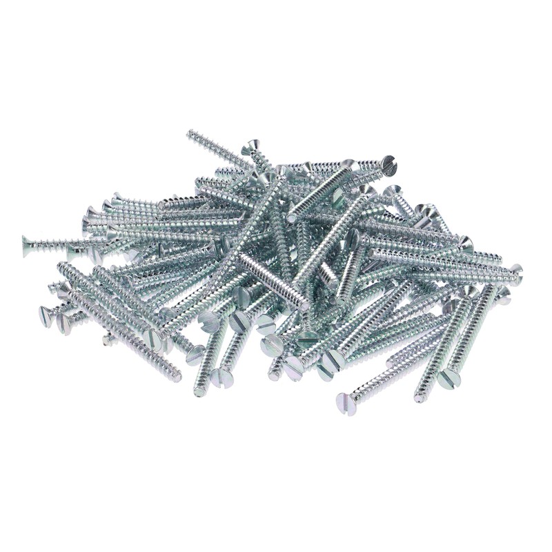 - Pack of 100 device screws 3.2 mm x 40 mm countersunk head with slotted holder, quick-screw thread, galvanised