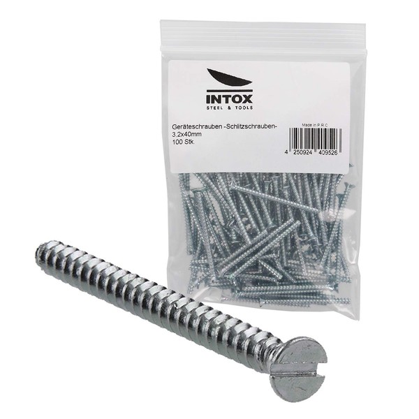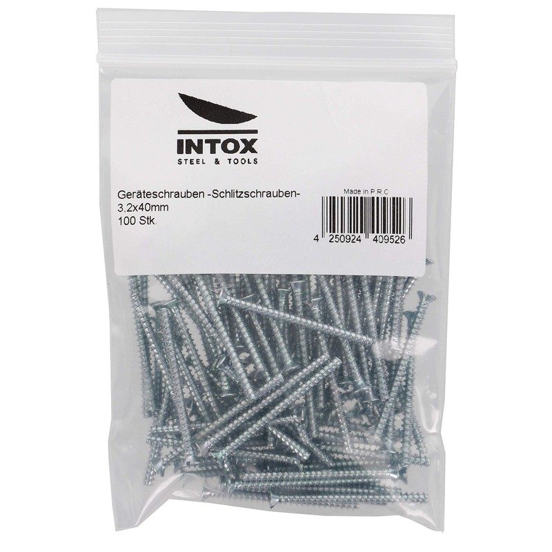 Intox Device Screws for Switch Boxes 3.2 x 40 mm in Bag Pack of 100 Slotted with Countersunk Head Galvanised