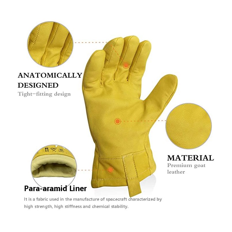 - COMFORTABLE:Full grain goat leather shell with Para-aramid liner & reinforced palm