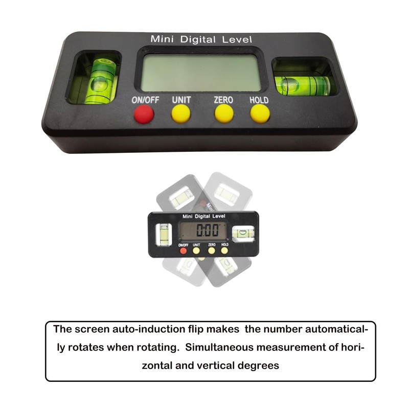 - Automatic screen rotation: The screen auto-induction flip makes the number automatically rotates when rotating. Simultaneous measurement of horizontal and vertical degrees, more accurate