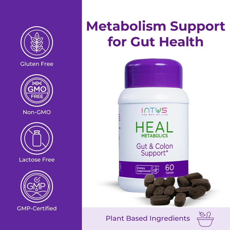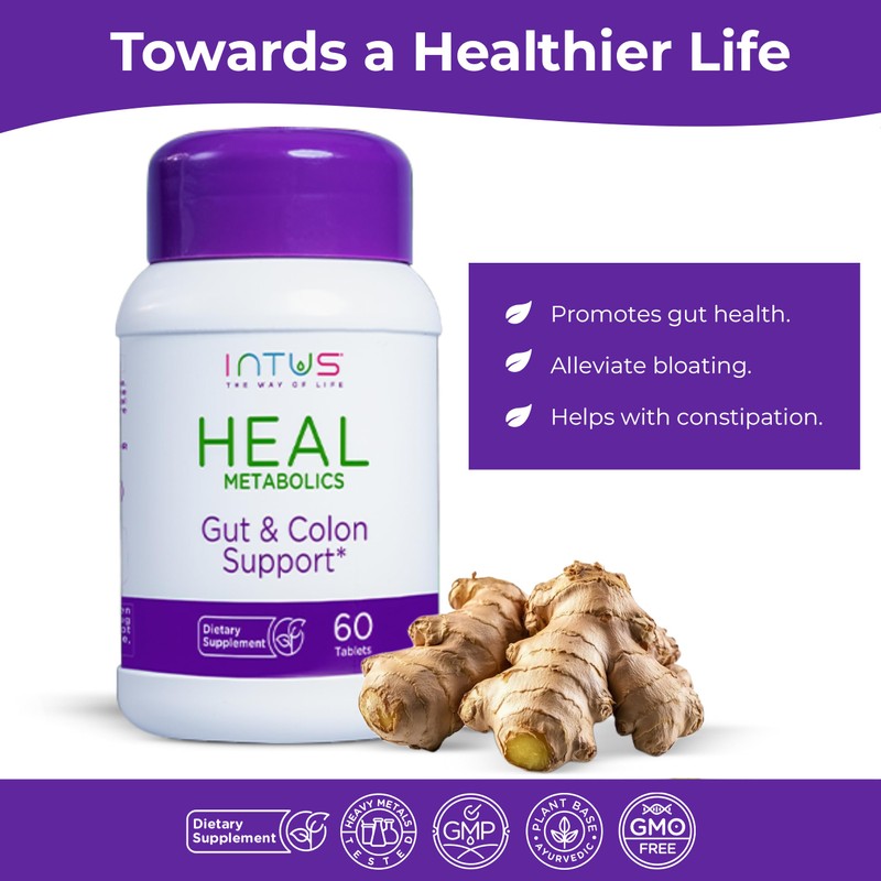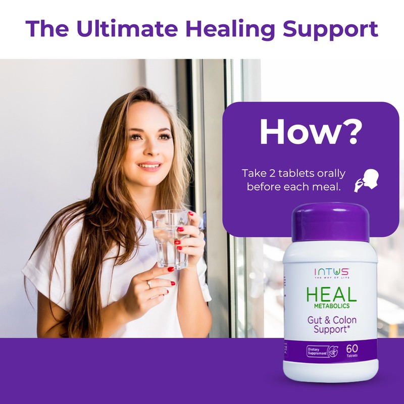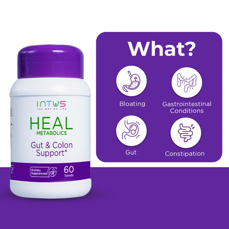 - Intus Heal provides digestive support with a carefully selected Ayurvedic blend. Perfect for men and women, it promotes gut health and wellness when taken regularly before meals.