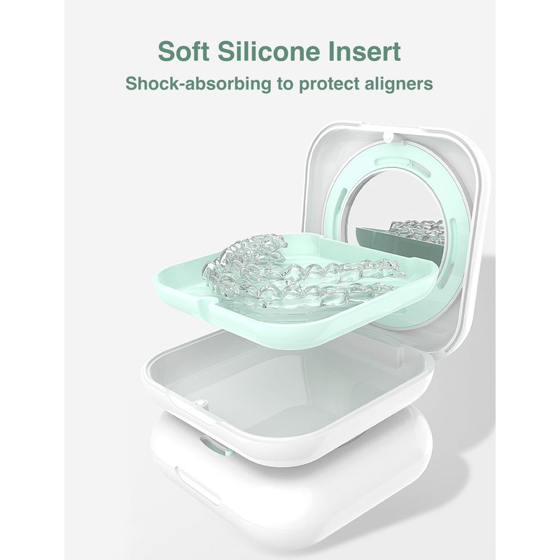 • User-Friendly: The retainer holder comes with an integrated mirror, plus a retainer removal hook, a retainer chewie, and a cleaning brush, making it easy to check your oral hygiene and retainer fit anytime, anywhere