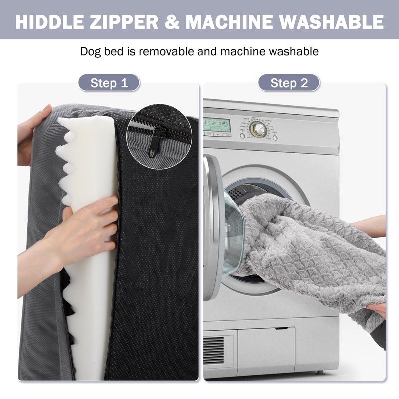- WATERPROOF & WASHABLE DOG BED: The dog bed features a removable, machine-washable cover with a zipper for easy to quick remove and care, so just throw it in the washing machine and will be as good as new, ensuring your pet's space stays fresh and hygienic. The waterproof inner lining fully protect the foam from spills, water damage, or accidents, prolonging the product's life.