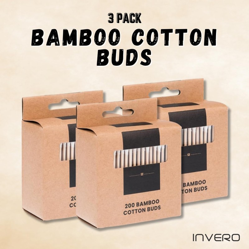 Invero 600 Pack of Eco-Friendly Natural Organic Bamboo Cotton Buds - Family Pack Cotton Swabs - Biodegradable Decomposable 100% Plastic Free Ear Buds