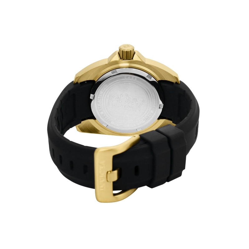 - Mineral crystal; brushed gold-plated stainless steel case; white polyurethane strap