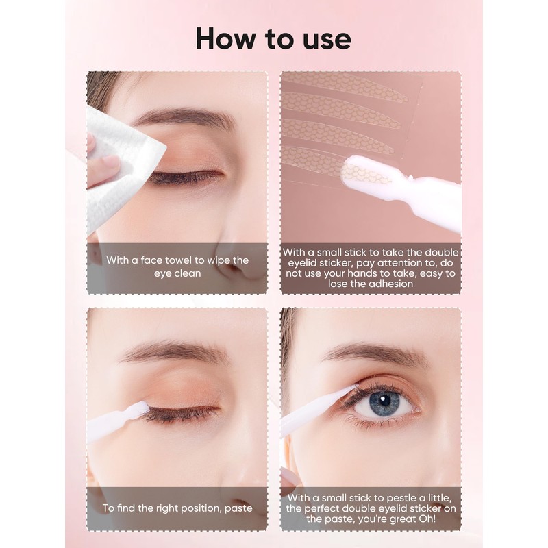 - Versatile Application: Ideal for both makeup enthusiasts and those going au naturel, these strips effortlessly create natural-looking double eyelids. Pre-cut to fit most inner double eye shapes, no trimming is required for quick and hassle-free application