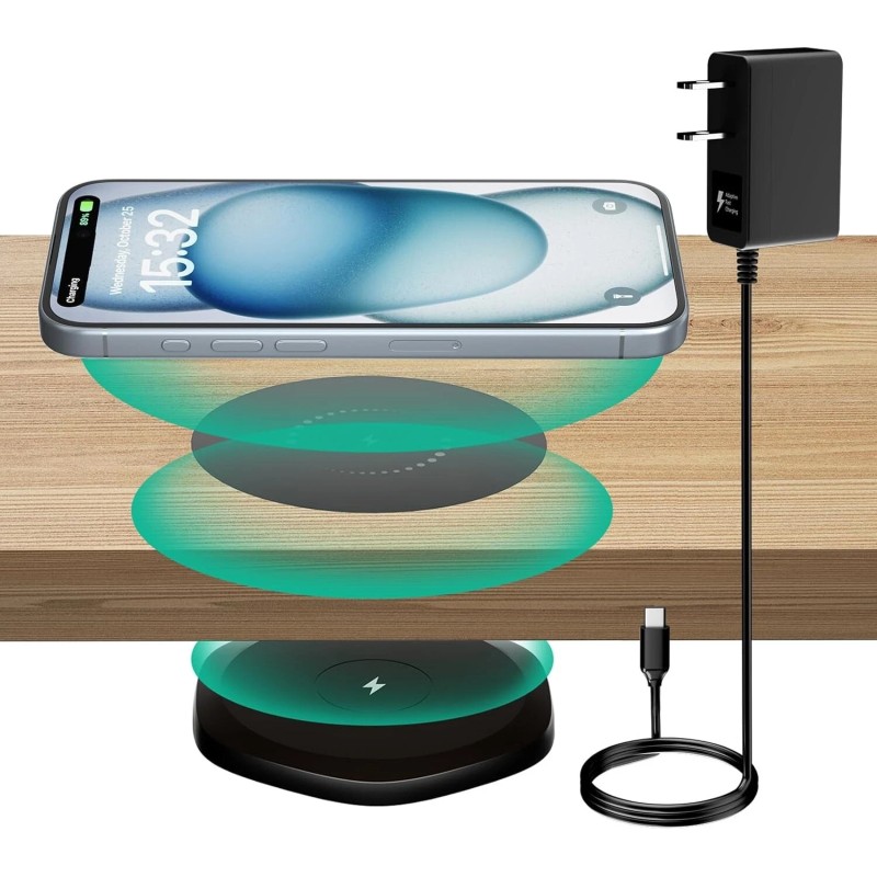 Invisible Wireless Charger Mat - 30mm Under Desk Charging Station for All Dev...