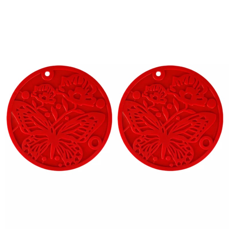 2pc, Silicone 7-Inch Trivet Mat Set, Heat Resistant Pot Holders, Multipurpose Non-Slip Hot Pads for Kitchen Potholders, Hot Dishers, Jar Opener, Spoon Holder, Made in Korea (Red)