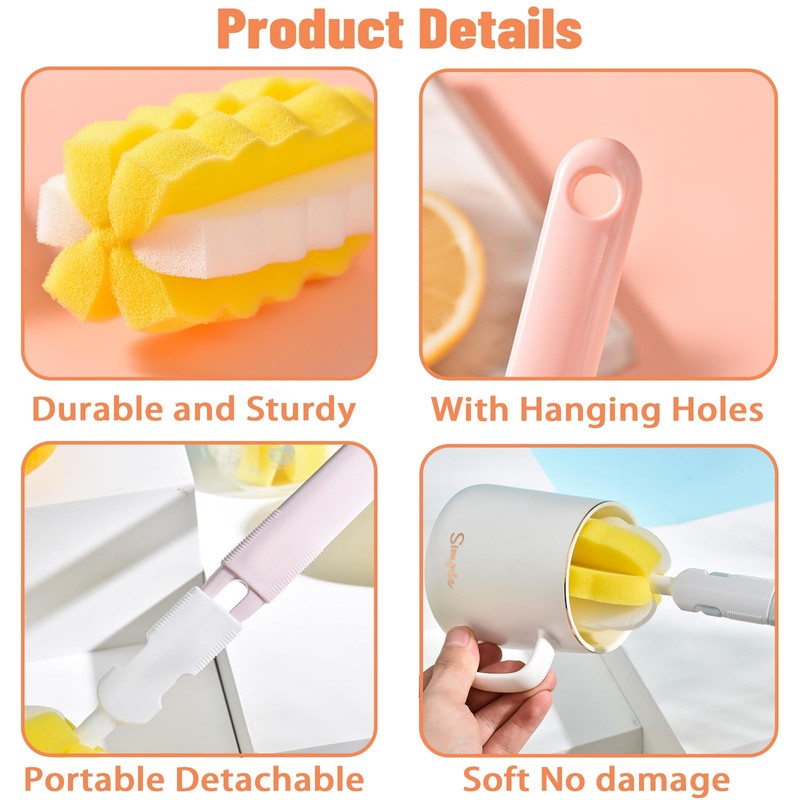 High Quality Materials - Soft and elastic sponges can protect the cups while helping create rich suds reaching all corners. The handle does not contain BPA, sturdy and durable.