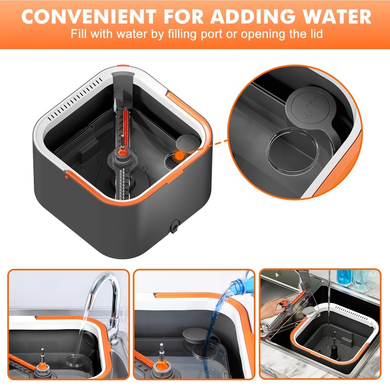• Clean & Dirty Water Separation System: This system has a dual-chamber design that keeps clean and dirty water separate, conserving water and reducing frequent changes. Using only fresh water enhances cleaning efficiency, leaving your home feeling fresher and smelling better!