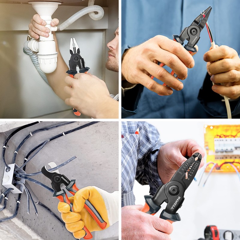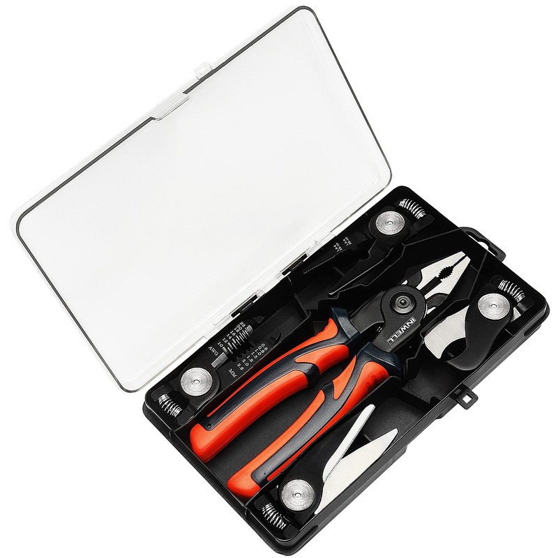 Inwell 5 IN 1 Plier Tool Set - Includes Cable Cutters, Wire Stripper, Crimping Plier, Linesman Pliers, Scissor, Multipurpose Combination 8 Inch Pliers with Storage Case