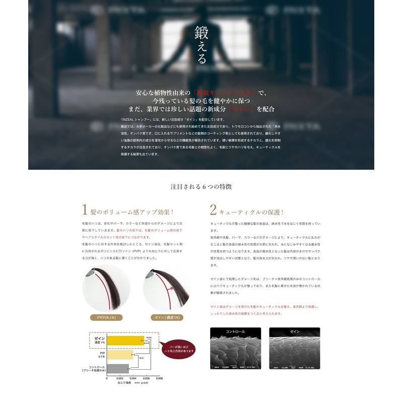 - 1. Zein, 2. Japanese green gentian extract, 3. Hydrolyzed keratin (wool), 4. Hydrolyzed silk, 5. Water-soluble collagen