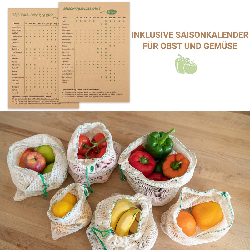 - Includes seasonal calendar - With the included seasonal calendar you can quickly check which fruit and vegetables are in the regional season. This makes it possible to purchase seasonal fruit and vegetables without packaging.