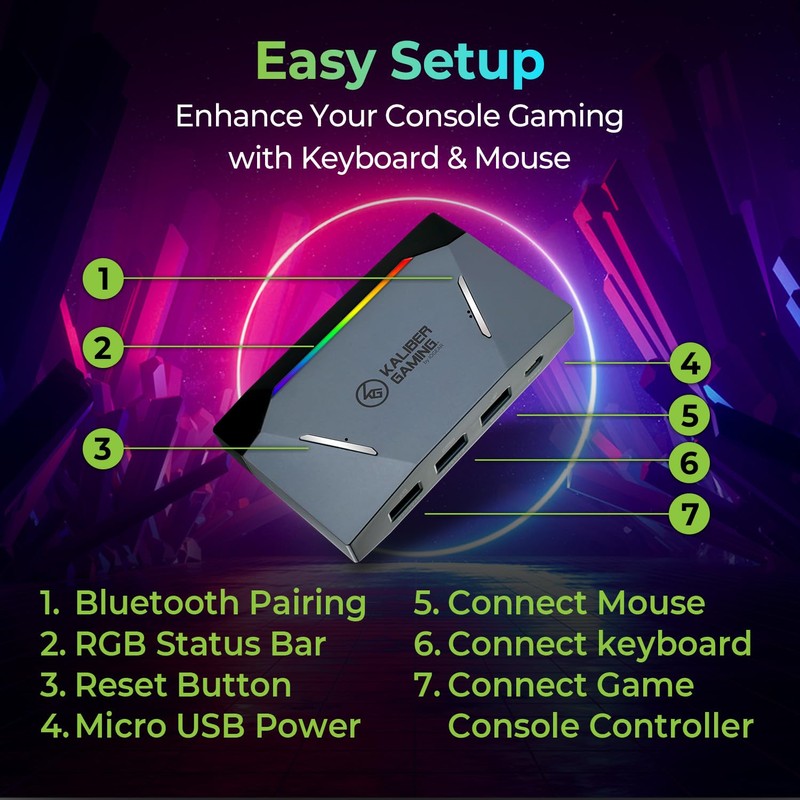 Dominate With Keyboard & Mouse on Xbox One, PS4 & Nintendo Switch KeyMander 2, the next generation controller adapter from Kaliber Gaming by IOGEAR, brings the unmatched speed and precision of a keyboard and mouse to Xbox One, Xbox 360, PS3, PS4 and Nintendo Switch game consoles. Use your keyboard and mouse skills to dominate all your favorite First-Person Shooter (FPS), Role Playing Games (RPG) and Real-Time Strategy (RTS) games. Playing on a console has never been this much fun! Play Your Way With Controller Crossover Mode Got a PS4 and don't like the Dualshock controller? Swap it out for an Xbox One controller or Nintendo Switch Pro controller with KeyMander 2’s controller crossover mode. Now interchange an Xbox One, PS4 or Nintendo Switch original controllers between different consoles to play the latest games like Madden, Mortal Kombat and other titles better suited for a controller. Truly customize your experience with KeyMander 2’s button remapping features and change the button configurations for the crossover controller to experience the ultimate in personalized settings. K2 App: Dial in Your Settings & Customize Your Play Style With built-in Bluetooth connectivity, the KeyMander 2 is easily configured using your Apple or Android smartphone or tablet with the downloadable K2 app. Download profiles for popular games, customize them on the fly and even backup your profile library to KeyMander 2 cloud storage. The K2 software enables macro programming, and several other custom features to help you gain the upper hand in your online battles. Download the app from the App Store or Google Play store. See additional features here. Dominate The Leaderboard With Precision & Accuracy The all-new KeyMander 2 is up to 8 times faster and provides a smoother mouse response than ever before. Increase your precision and accuracy on FPS franchises such as Call of Duty: Modern Warfare, Apex Legends, Fortnite, PUBG and Battlefield 5. The KeyMander 2 is the perfect accessory to destroy your competition in multiplayer games against players that are still using controllers. PC Gamers: Use Your Skill to Play With Your Friends on Console Are you a PC gamer? With a game console and KeyMander 2, connect your gaming keyboard and mouse and use your sharpened skills to play with friends on PS4, Xbox One and Nintendo Switch. Access all controller functions more accurately and rapidly for more competitive play with any shooting game than with a controller. Works With The Latest Popular Games KeyMander 2 is compatible with all console games, on the Xbox, PlayStation and Nintendo Switch, and provides the ultimate gaming experience for FPS titles such as these popular games: Apex Legends Playerunknown's Battlegrounds Call of Duty: Black Ops 4 Overwatch Fortnite Battlefield 5 FarCry 5 Red Dead Redemption 2 AND MORE!