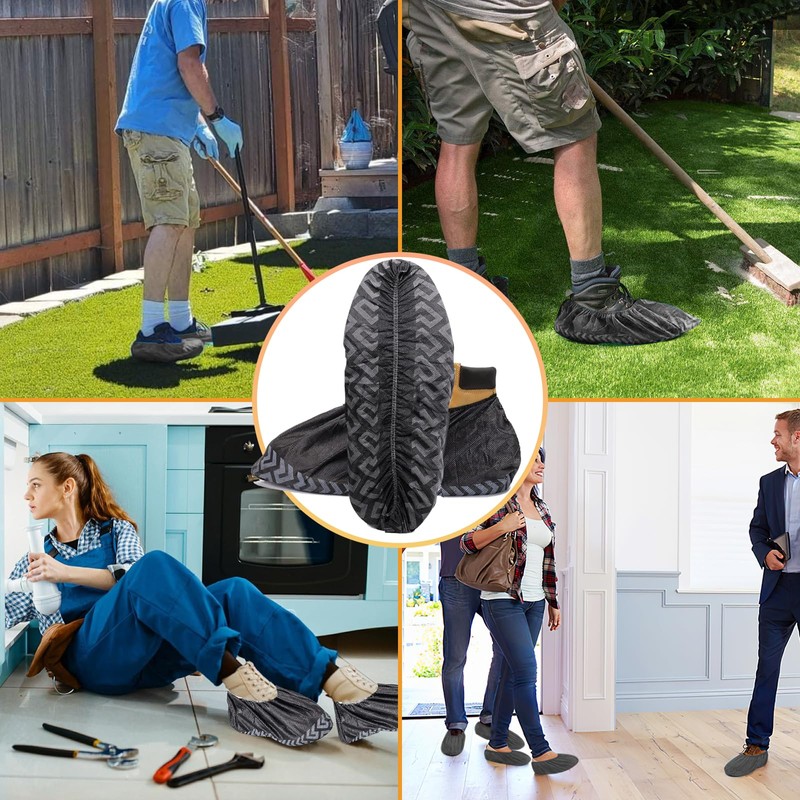- ★Home Essential: Recyclable:Eco-friendly disposable shoe cover. Guests don't take off their shoes, perfect for family gatherings, birthday parties, Christmas parties, gardening work, carpet cleaning, home repairs, paint jobs etc. Keep your floor clean.