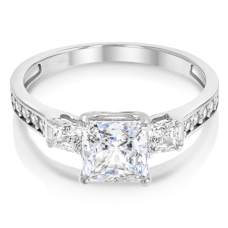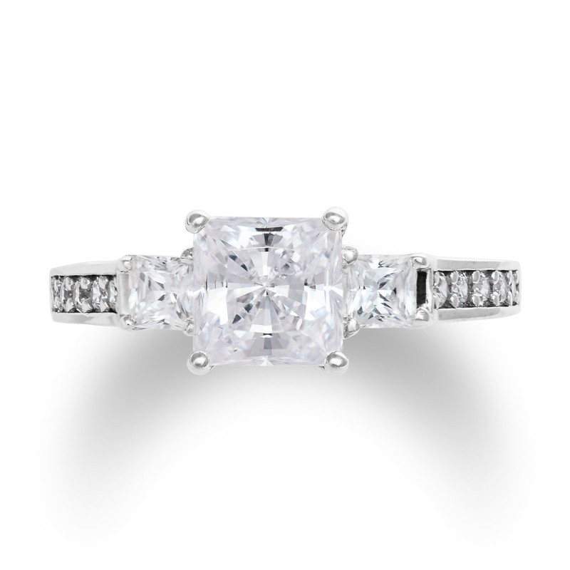 Ioka - 925 Sterling Silver 1.5 Ct. Cubic Zirconia CZ 3 Stone Princess Cut Engagement Ring - Size 9