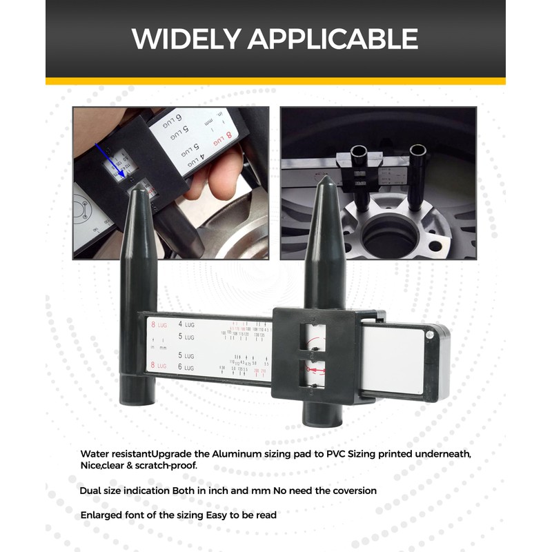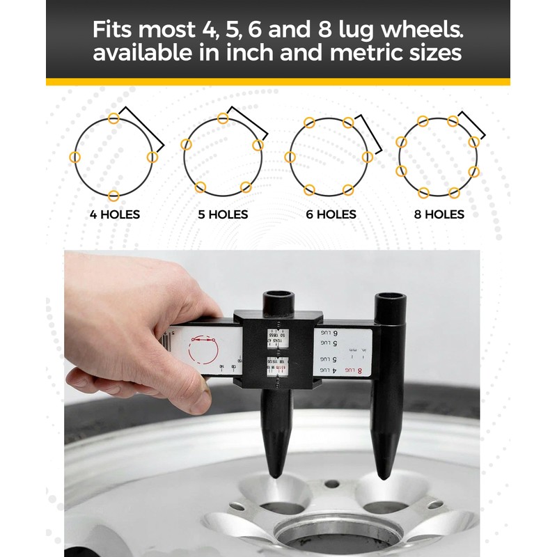 - [Product Function]: The wheel bolt pattern measuring tool can be used to measure the PCD data of vehicles and wheels, suitable for most 4, 5, 6 and 8 nut wheels.