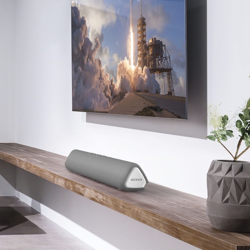 Ion Audio Meeting Mate Gray - Wireless Bluetooth Speaker and Soundbar with Stand, Built-in Rechargeable Battery, LED Ambiance Lights and Microphone (Renewed)
