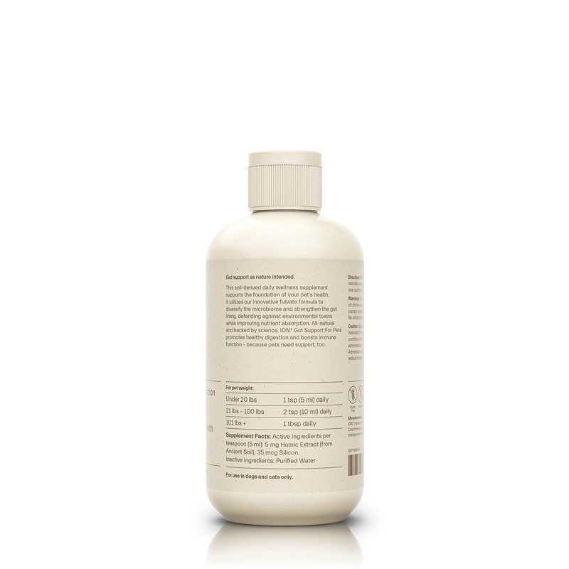 - AWAKEN VITALITY – Humic extract from ancient soil is at the heart of ION* Gut Support For Pets. By reawakening 60-million-year-old soil carbons frozen in time, we reconnect your pet with their inherent vitality.